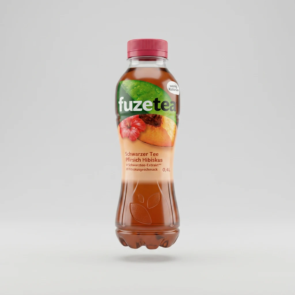 Zutaten: Gebrühter schwarzer Tee (Wasser, konzentrierter Schwarztee-Aufguss), Zucker, Pfirsichsaft aus Pfirsichsaftkonzentrat (1%), Säuerungsmittel: Citronensäure, Natriumcitrate; Hibiskusextrakt, natürliches Aroma, Antioxidationsmittel: Ascorbinsäure, Süßungsmittel: Steviolglycoside aus Stevia. Nach dem Öffnen kühl aufbewahren und innerhalb von 2-3 Tagen verbrauchen.